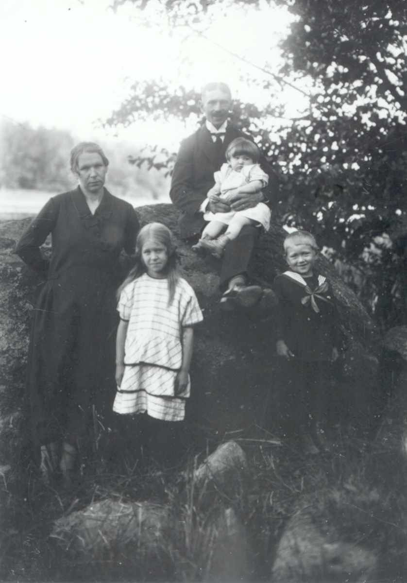 Axel Svensson, Blankaholm, maka Signe samt makarnas barn Margareta, Stig och i pappans knä Margot.