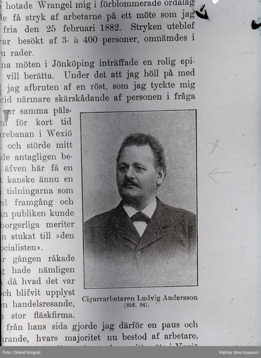 Ludvig Andersson cigarrarbetare, porträtt taget ur bok.