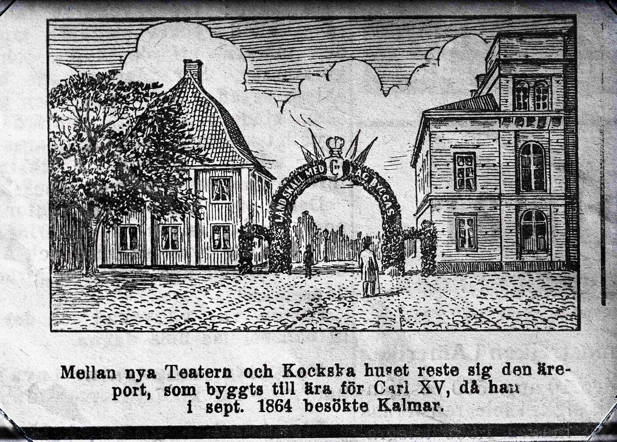 Mellan nya Teatern och Kockska huset reste sig den äreport, som byggts till ära för Carl XV, då han i september 1864 besökte Kalmar.