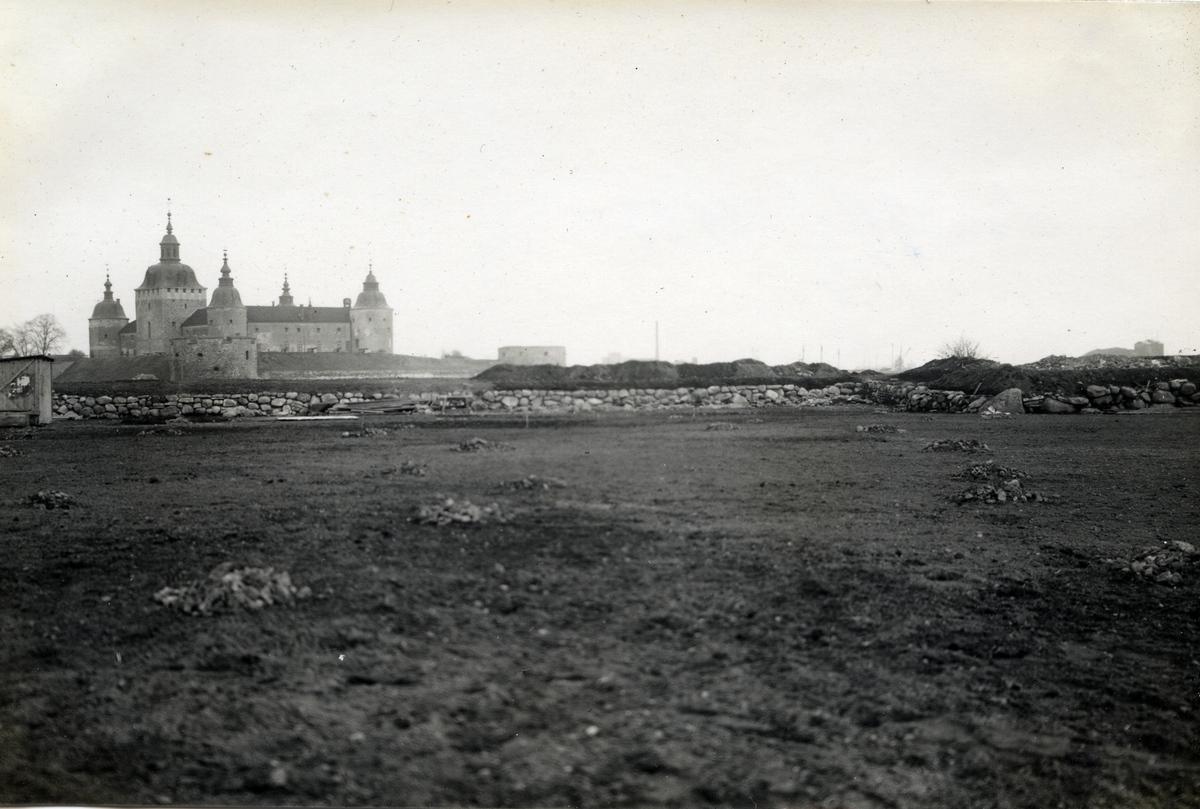 Kalmar slott från sydväst i samband med arkeologisk utgrävning 1932-1934.