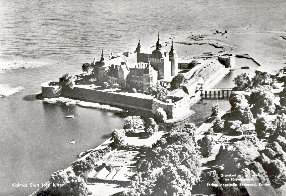 Flygfoto över Kalmar slott. Slottet och stadsparken samt Kalmarsund.