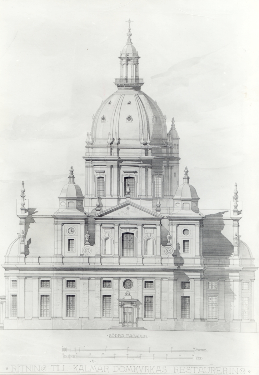 Ritning av Helgo Zetterwall, förslag till kupol på Kalmar domkyrka.