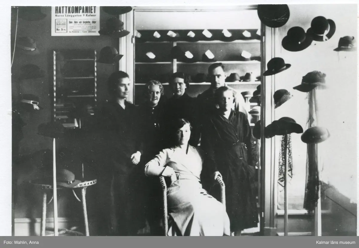 Stående från vänster: modisterna. Elsie Dahlberg, Svea Lindkvist och Anna Wahlin.