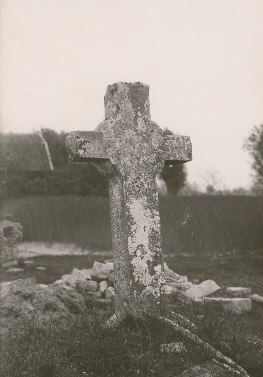 Medeltida stenkors med latinsk inskription.