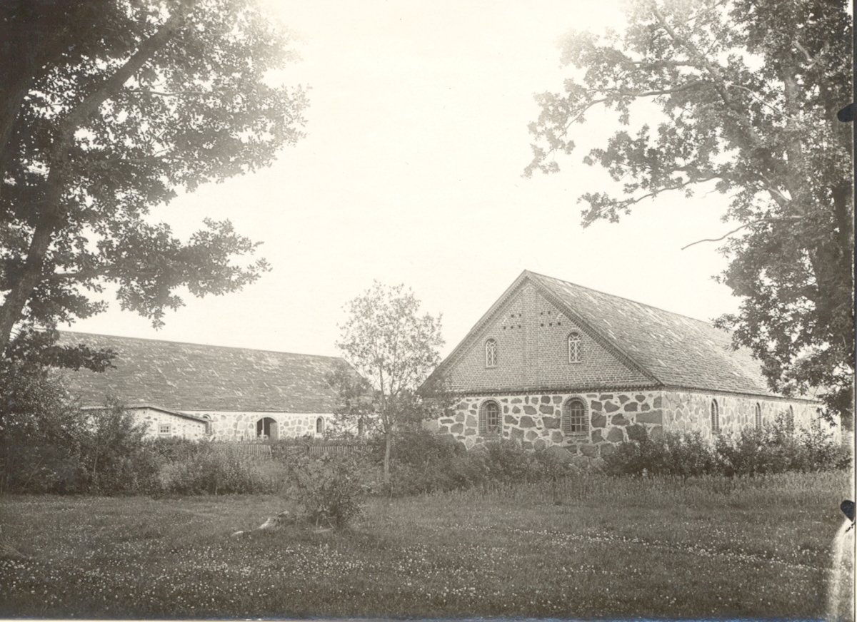 Motiv från gården Christiansborg i Förlösa, ladugård av gråsten.