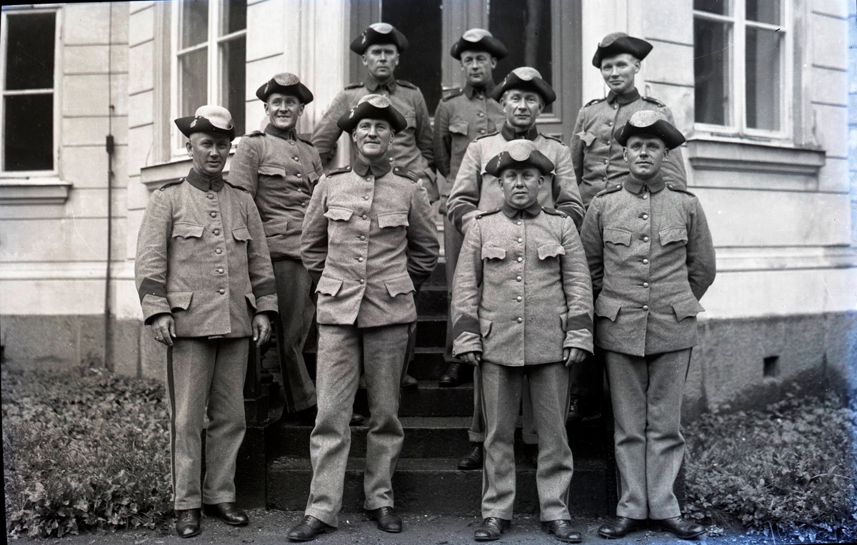 Beredskapsmän utanför dåvarande Berdskapssjukhuset, senare Söderportsskolan.