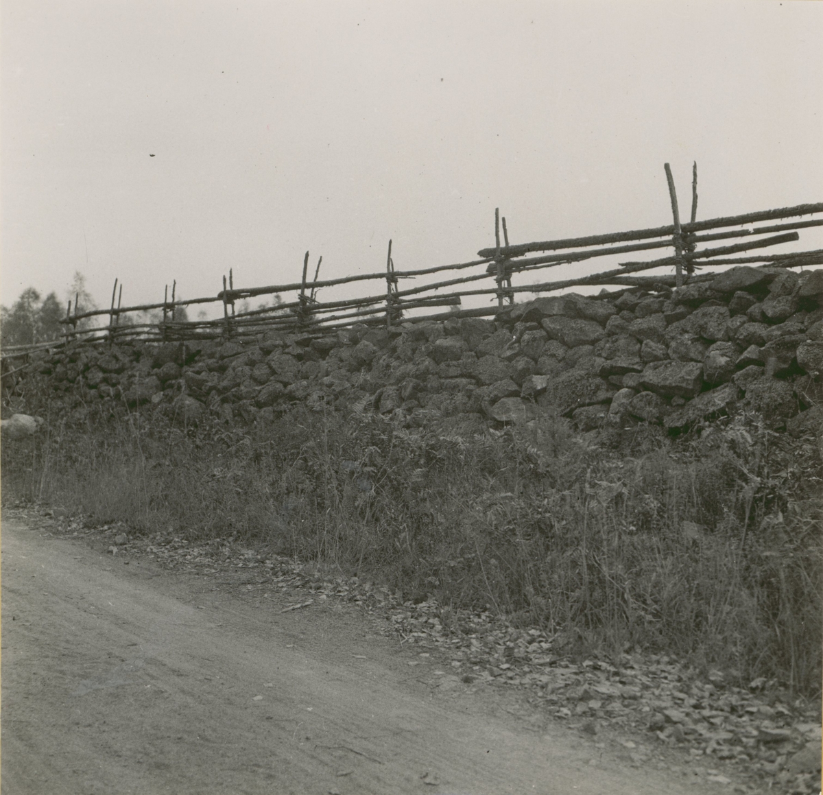 Gärdesgård på stenfot i Korparyd. Denna typ är mindre vanlig än Söderåkratypen.