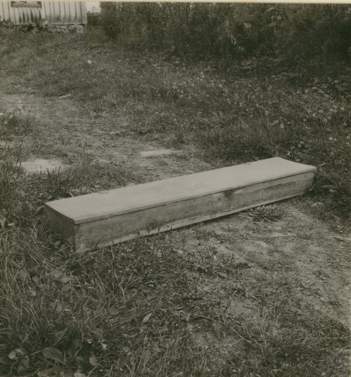 Ljuslåda från Korparyd. Mått: 135 x 26 x 14 cm.