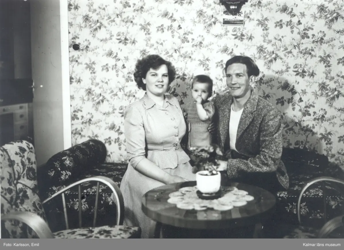 Kolgården, Blankaholm. Roy och Berit Andersson med sonen Sverre. Roy, född 1923-12-20, Berit, född 1932-11-18, Sverre, född 1950-06-03.