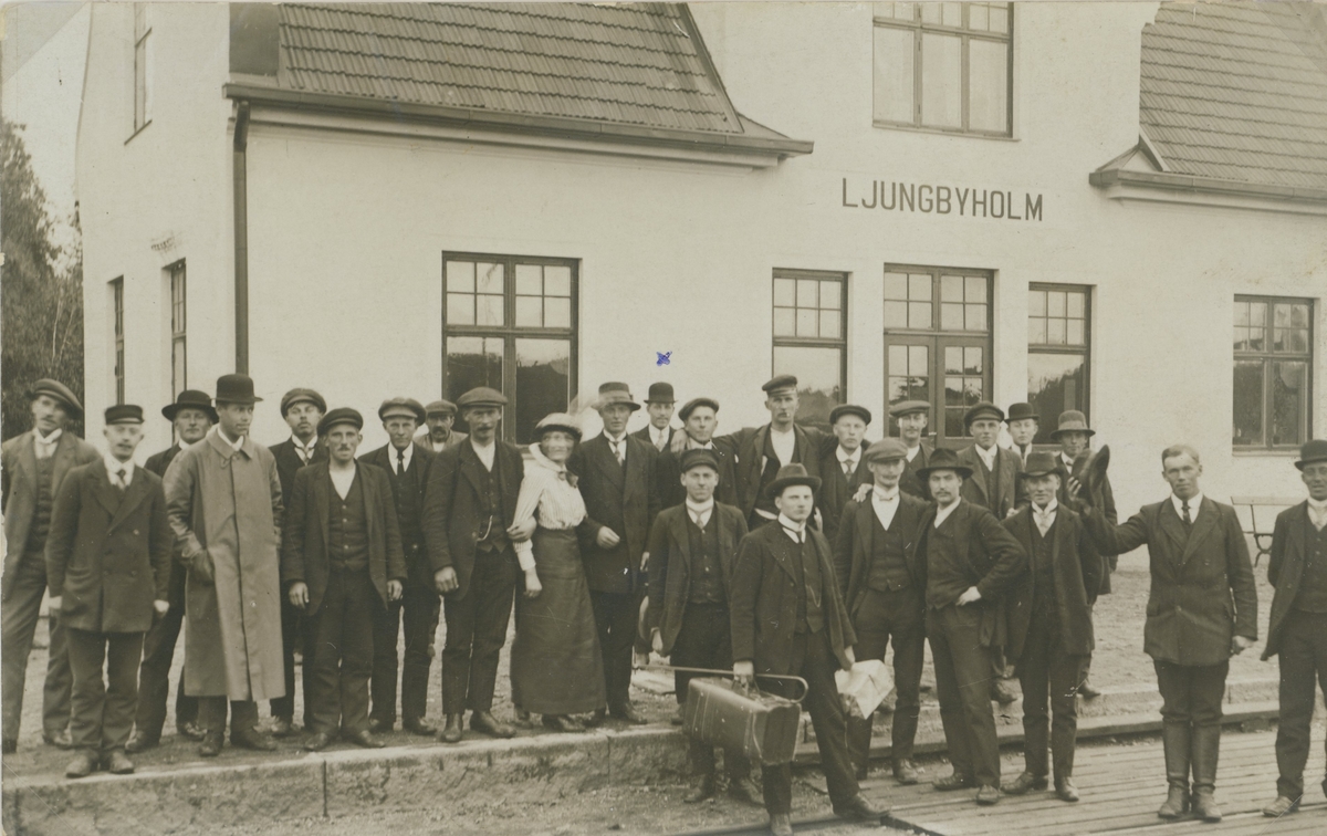 Resenärer och personal vid Ljungbyholms station 1916-1918.