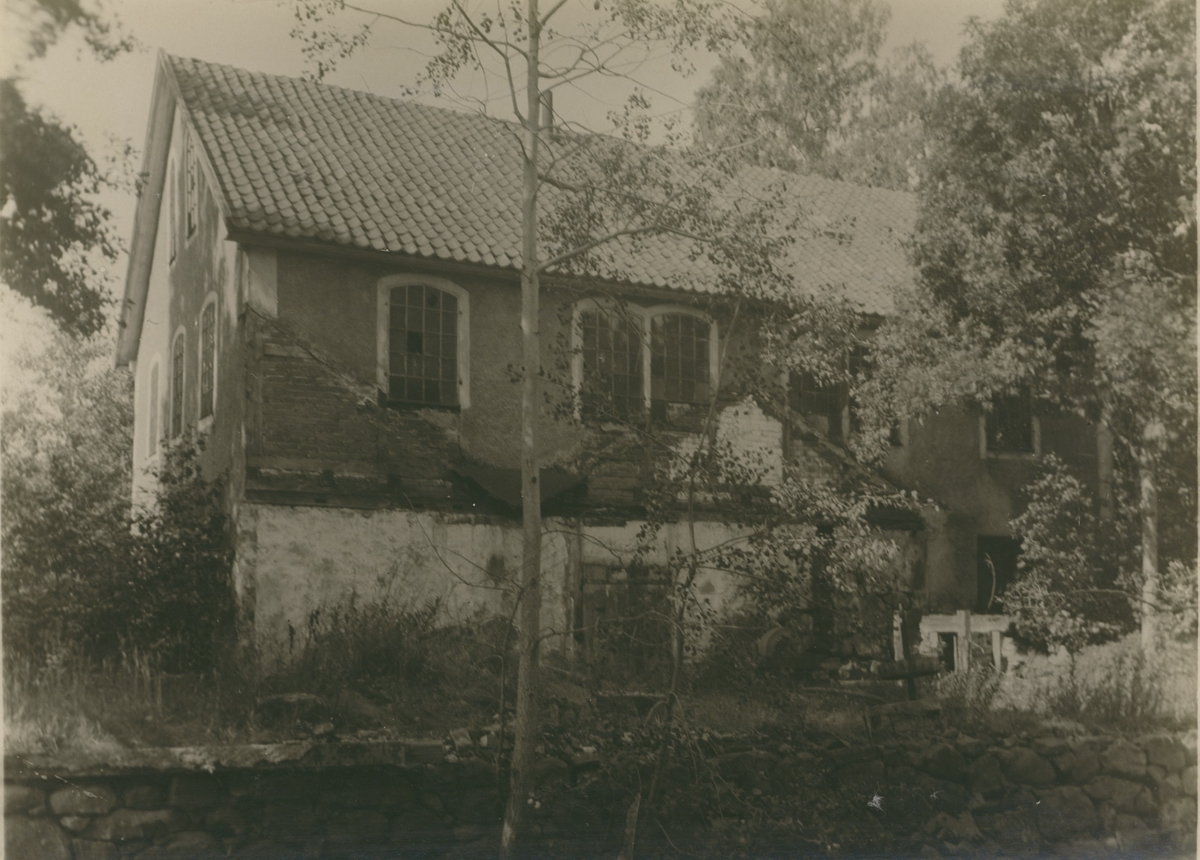 Fredrikströms bruk. Den gamla mekaniska verkstaden. Korsvirke, spritputsad fasad.