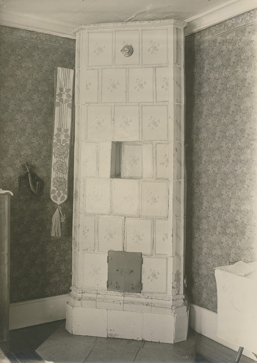 Kakelugn i en huvudbyggnad på en gård i Bottorp.
