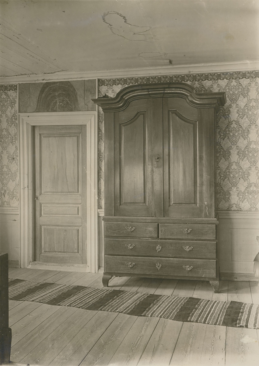 Huvudbyggnaden: övre. Prov på panel- och dörrsnickeriet. Skåp av ek. Höjd. 83+160 cm, bredd. 140 cm.
