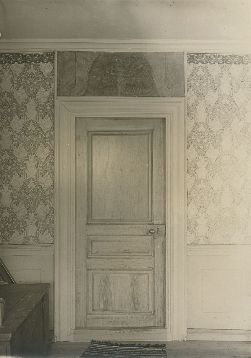 Huvudbyggnaden: övre våningen, stora salen. Dörr. Tapet från 1860-talet.