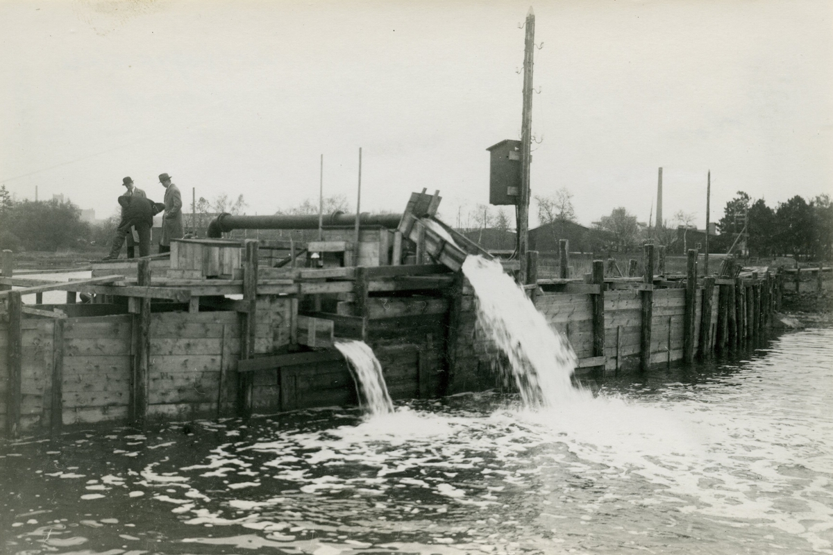 Titel: Utgrävningen i Slottsfjärden 1932-1934 med ledning av Harald Åkerlund, och bedrevs som AK-arbete. Fyllmassorna användes för att bygga upp nuvarande Tjärhovet. I den syrefattiga leran hade det organiskt materialet bevarats väl, varför man förutom keramik även fann ett flertal fartyg samt smärre fynd som handskar och skor. Utpumpning och torrläggning inför de arkeologisk utgrävning.