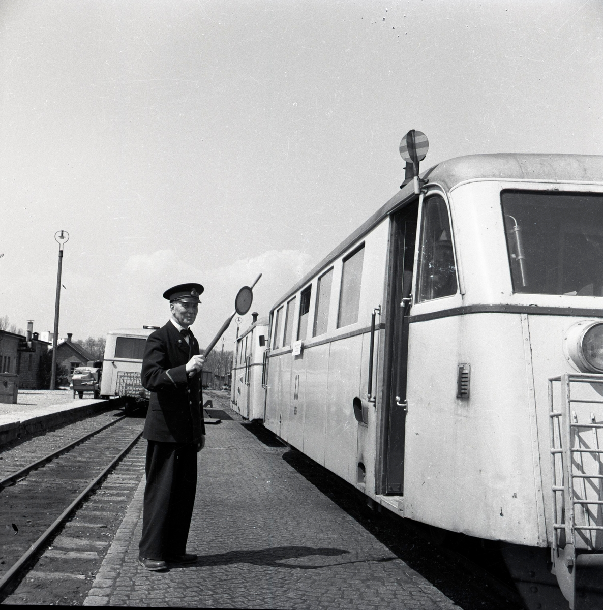 Stinsen Gunnar Hagström i Borgholm, på perrongen bredvid en rälsbuss.