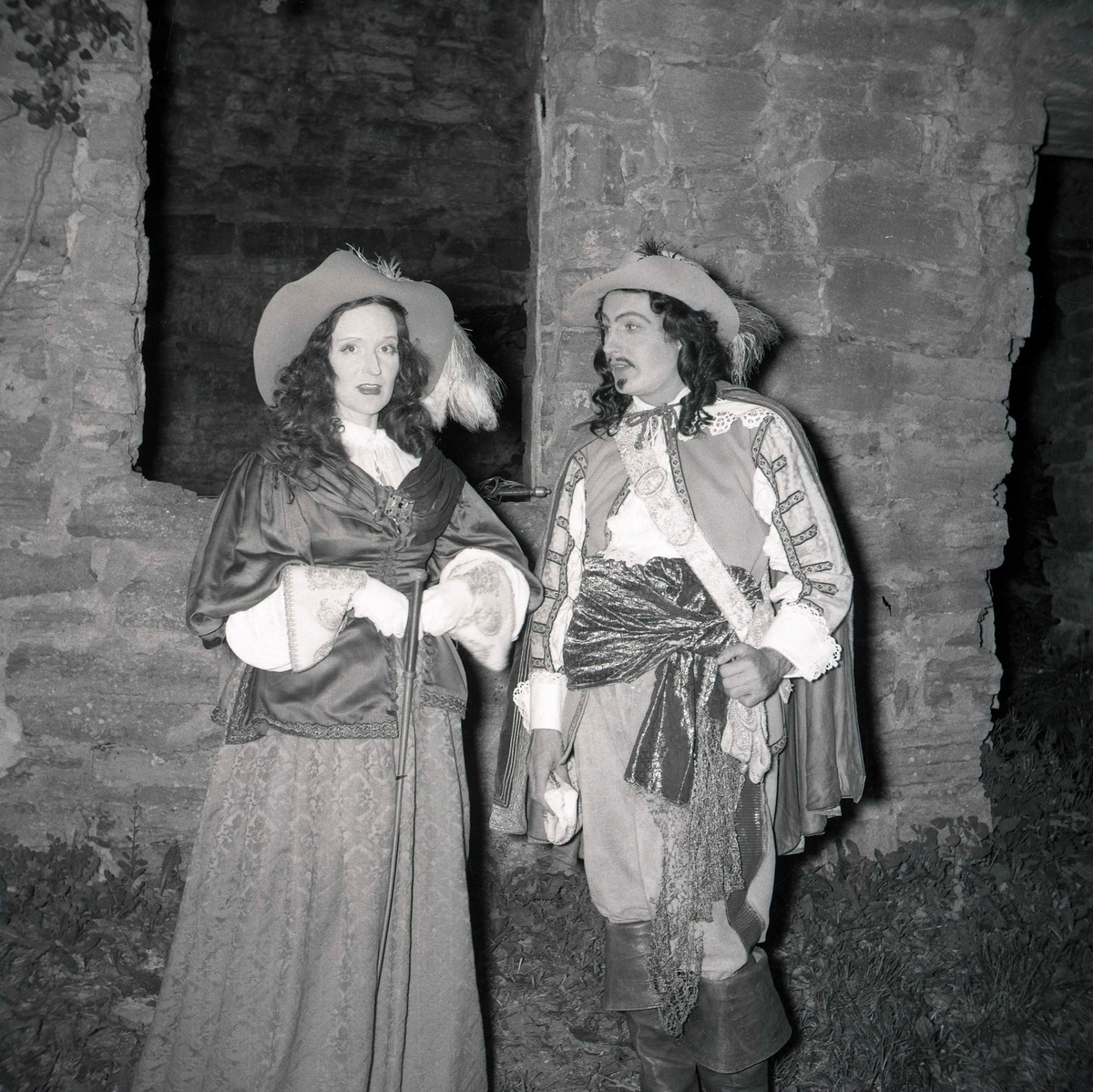 Titel: Ruinspelen, Borgholms slott. Till vänster Aino Taube i teaterkostym.