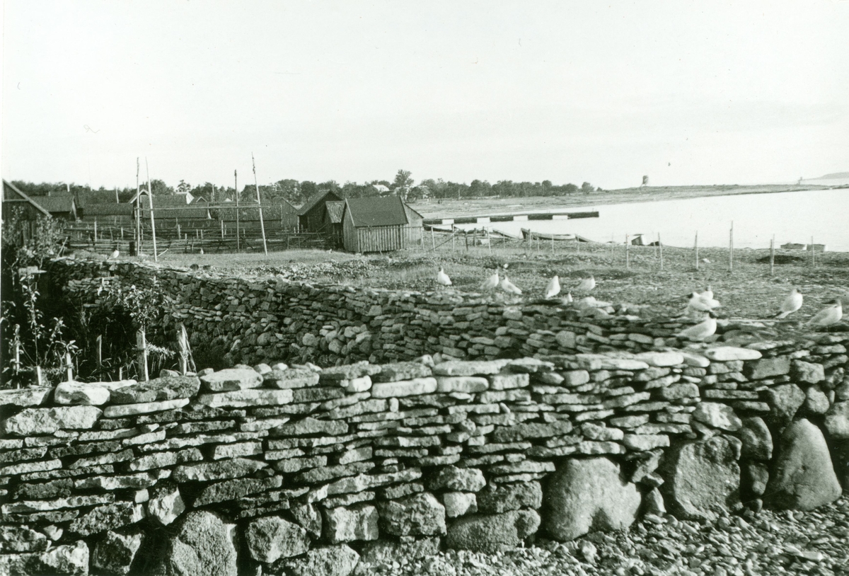 Stenmur och sjöbodar vid fiskeläget i Byxelkrok.
