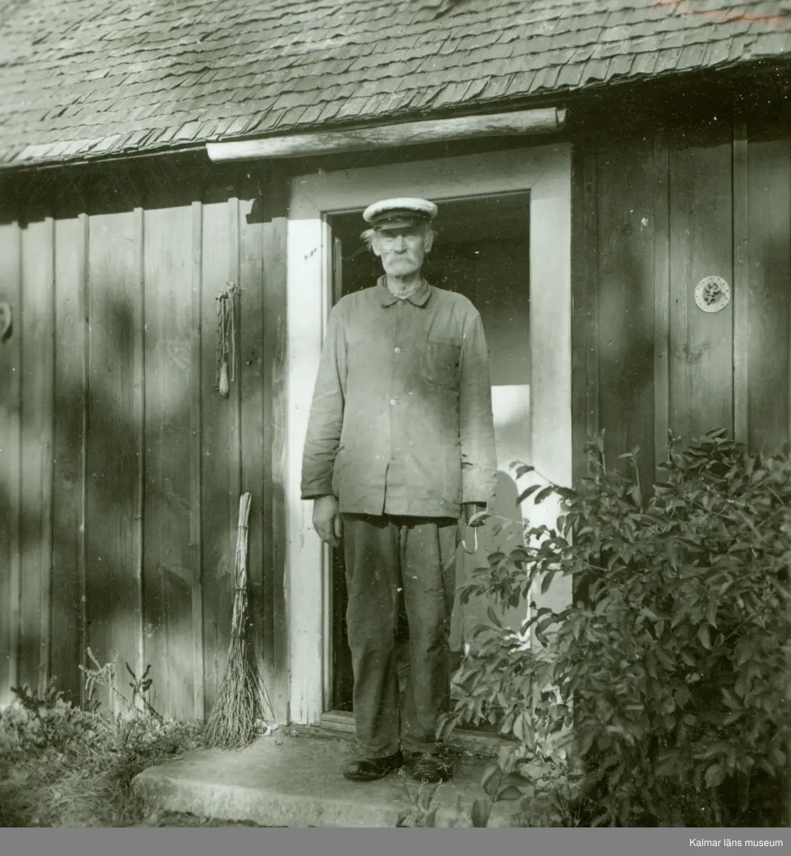 Före detta båtsman B Englund 73 år, (1938), framför sitt torp. Torpet byggdes av Englunds far, även han båtsman.