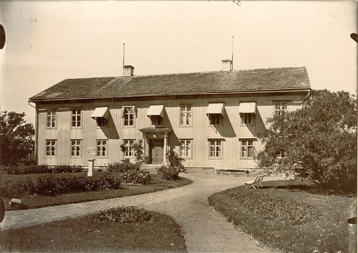 Huvudbyggningen vid Kläckeberga gård, uppförd vid början av 1800-talet. Grågul och sedermera vitmålad.