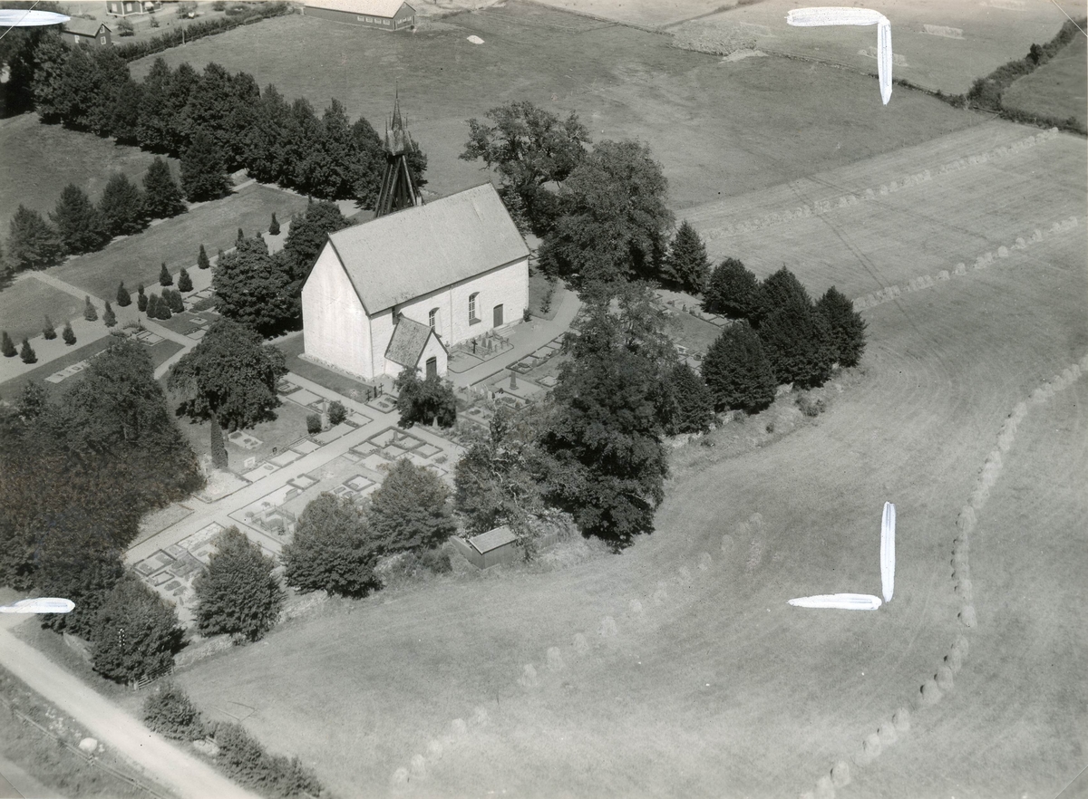 Flygfoto över Dörby kyrka.