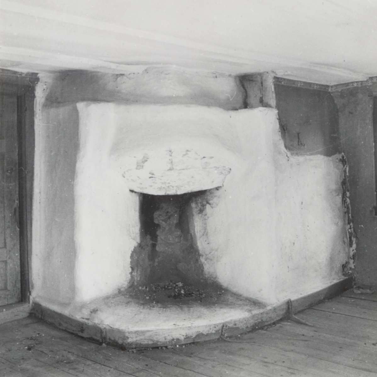 Maria Magnusson. Torp under Granhult. Före detta kronoboställe. Spis i stugan. En plåt insatt framtill i spisen från kåpan vettande snett nedåt mot baksidan för att det inte skall ryka fram.