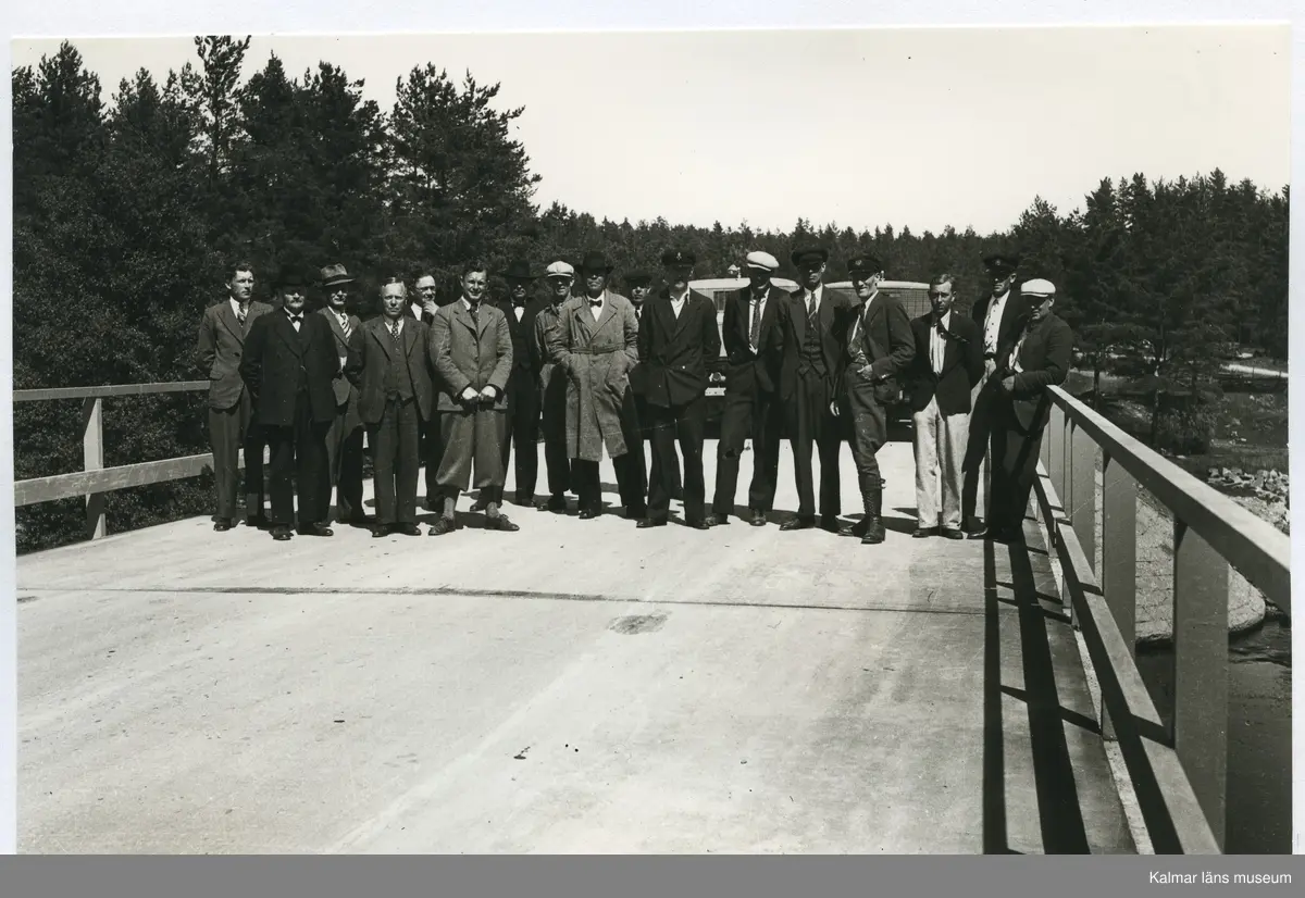 Kungsbro. Bro över Emån som förbinder Kalmar och Jönköpings län. Här provbelastas den nybyggda bron. Vägingenjör Dahlén.