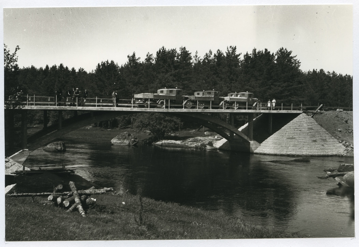 Kungsbro. Bro över Emån som förbinder Kalmar och Jönköpings län. Här provbelastas den nybyggda bron.