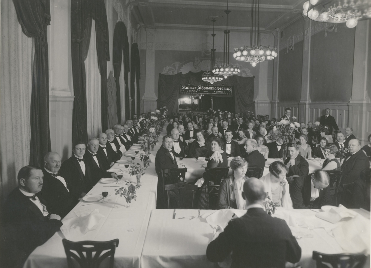 Kalmar Köpmannaförenings jubileumsfest 1908-1928 i stora festvåningen på Stadshotellet.