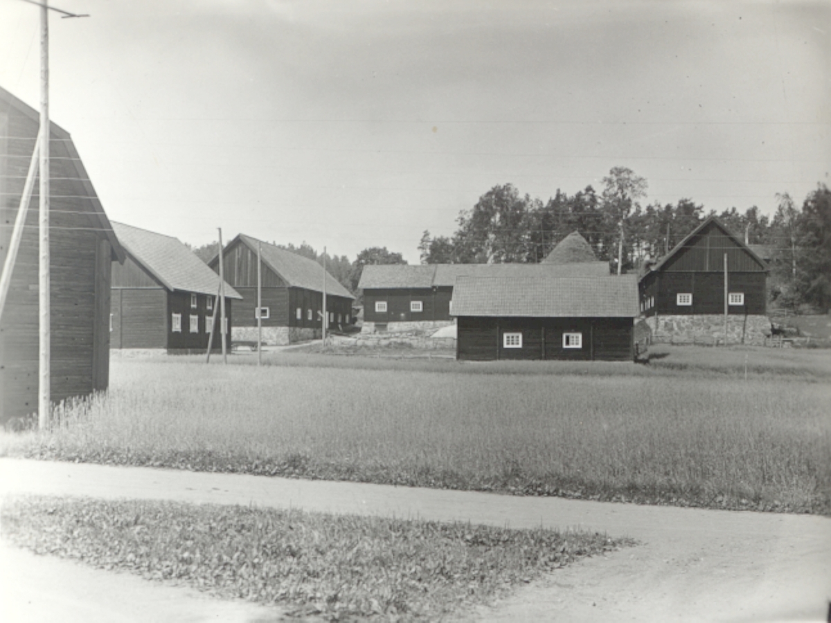 1)Stall i timmerskift. Tegeltak. Rödfärgat. Vita foder av 1860-taltyp.5)Fähus. Timmerskift. Gammal. Foderbord i mittaxeln.4)Stall. Timmerskift. Gammalt. En enda rad spiltor. 2)Hus för smådjur. Timmerskift. Synbarligen av mycket hög ålder. 3)Fähus. Timmerskift. På hög stenfot i sluttningen. Gammalt. Foderbord i mittaxeln. Smårutiga fönster.