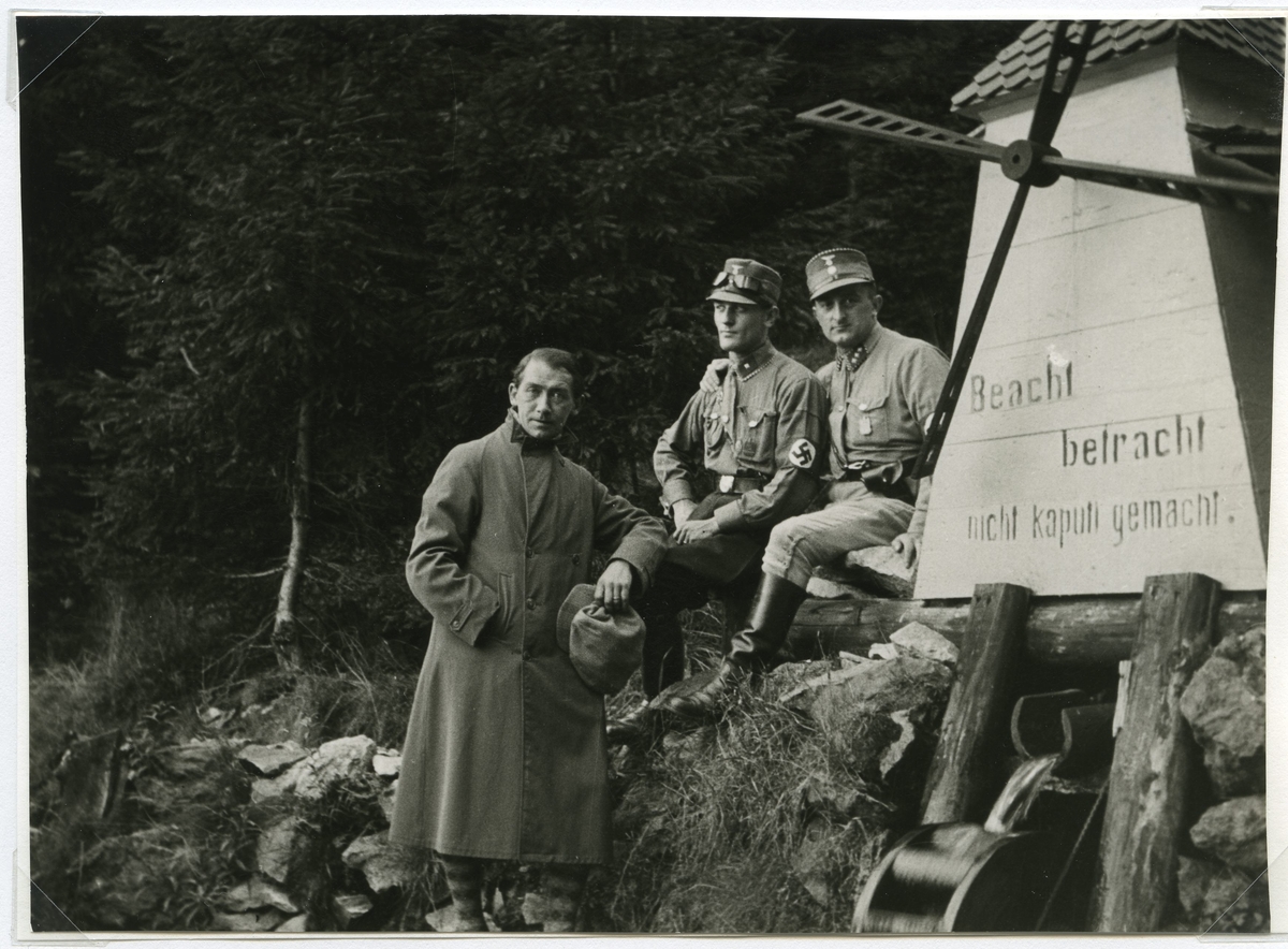 Hovfotograf Walter Olson, Kalmar, med två SA-män vid ett monument i närheten av Sommerbachskopf i Tyskland.