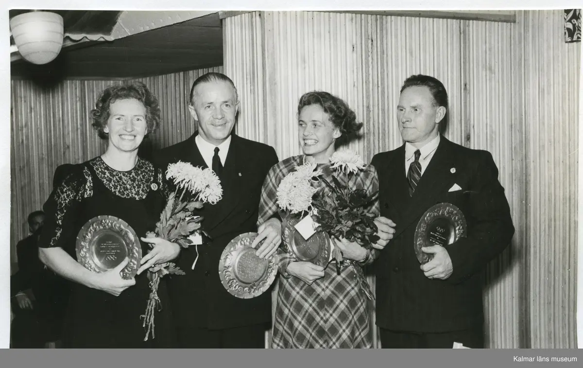 Tyngdlyftaren Reinold Pettersson, Kalmar längst t.h samt simmarflickan Laila Sjökvist närmast honom.