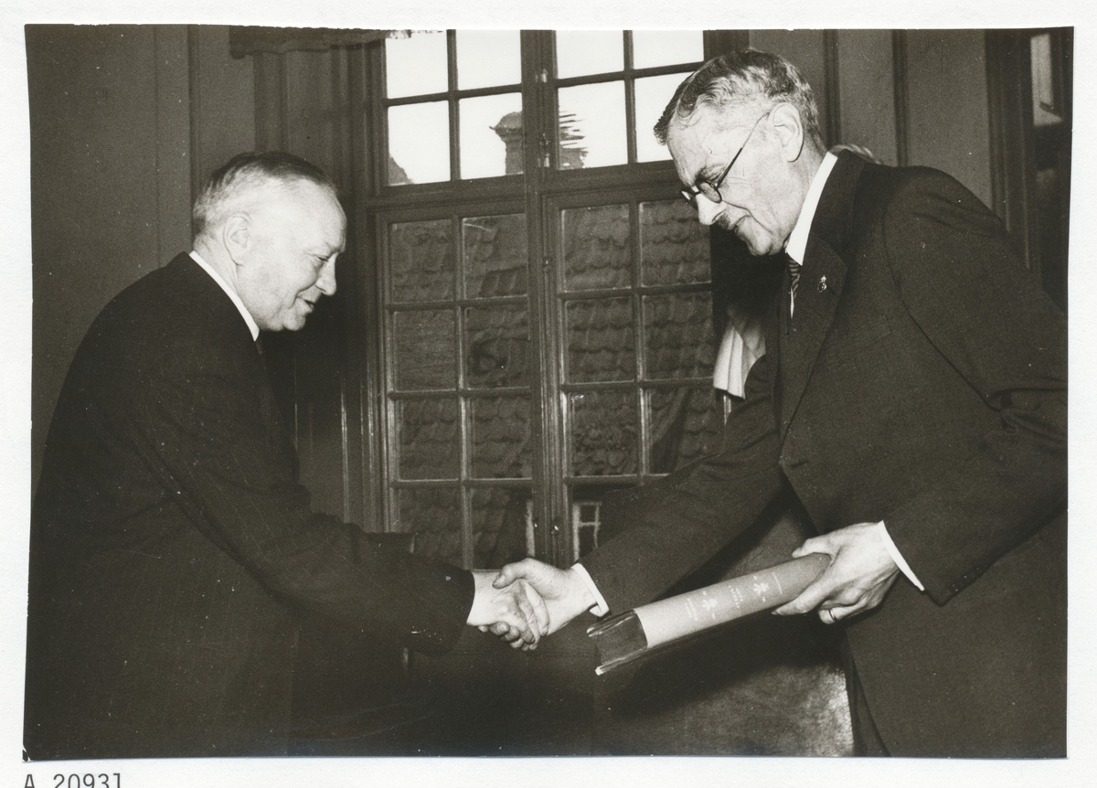 Landshövding Lidén, Kalmar (till höger) och stadsfullmäktiges ordförande Gustav L Johnsson.