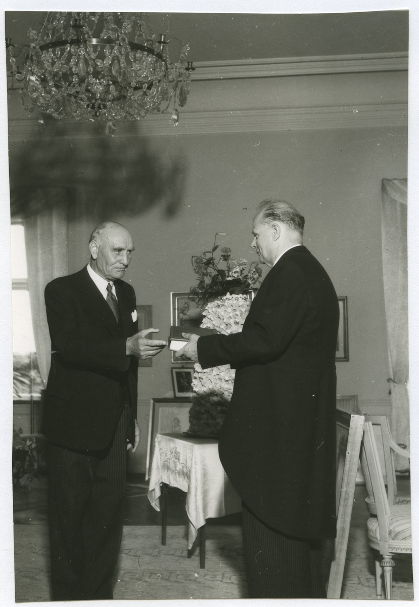 Landshövding Ruben Wagnsson till höger, cirka 1947-50.