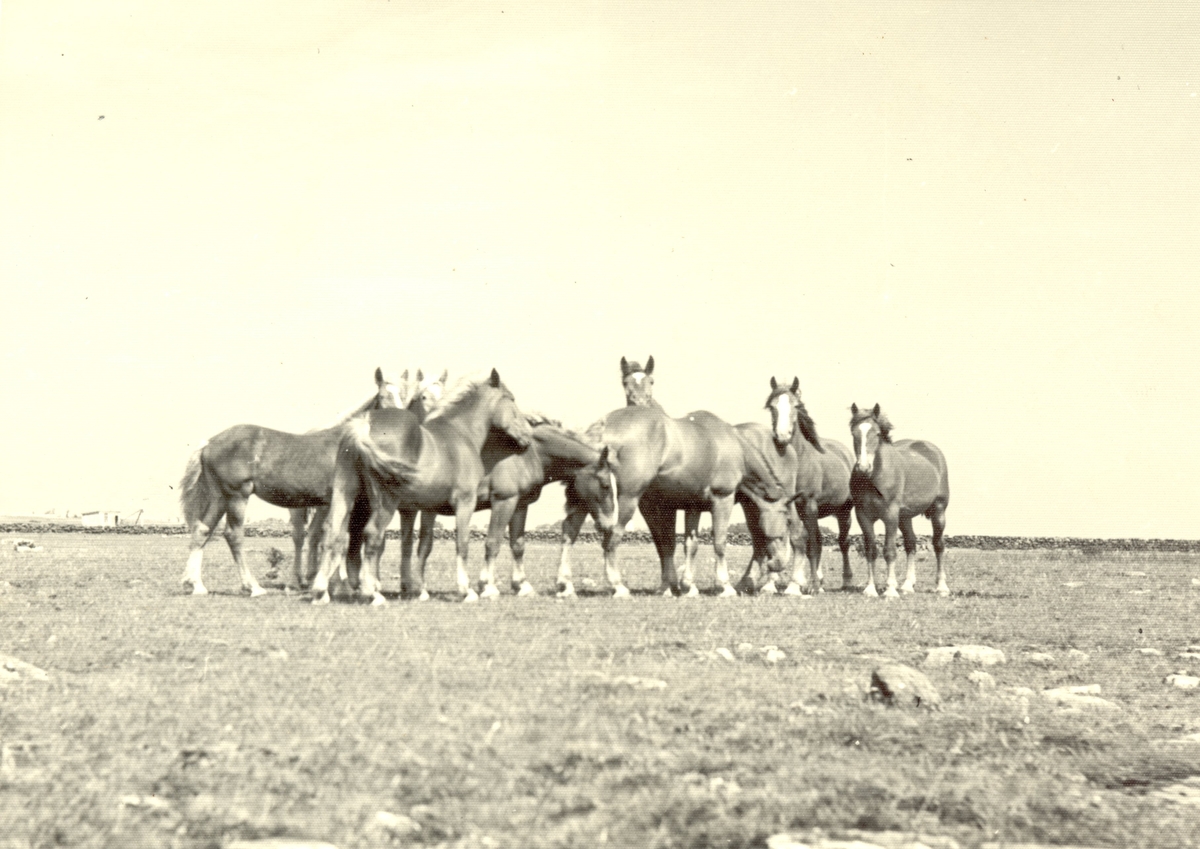 En flock hästar betar på alvaret.