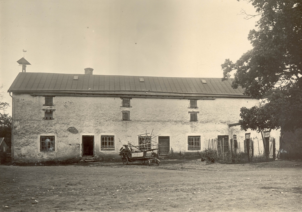 Den norra av flyglarna i mangården. Av kalksten. Vid inre gavelröstet vällingklocka. Under takfoten ett långt duvslag.