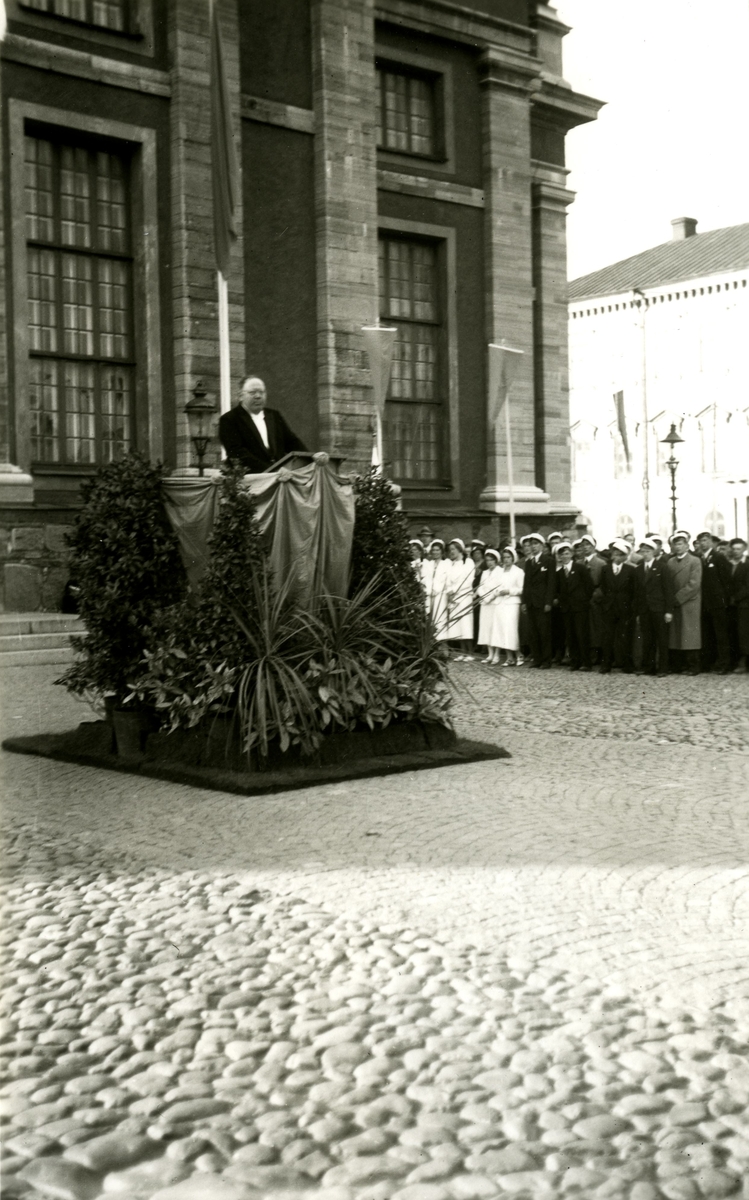 Walfrid Nilsson talar till nya studenter vid Domkyrkan i Kalmar.