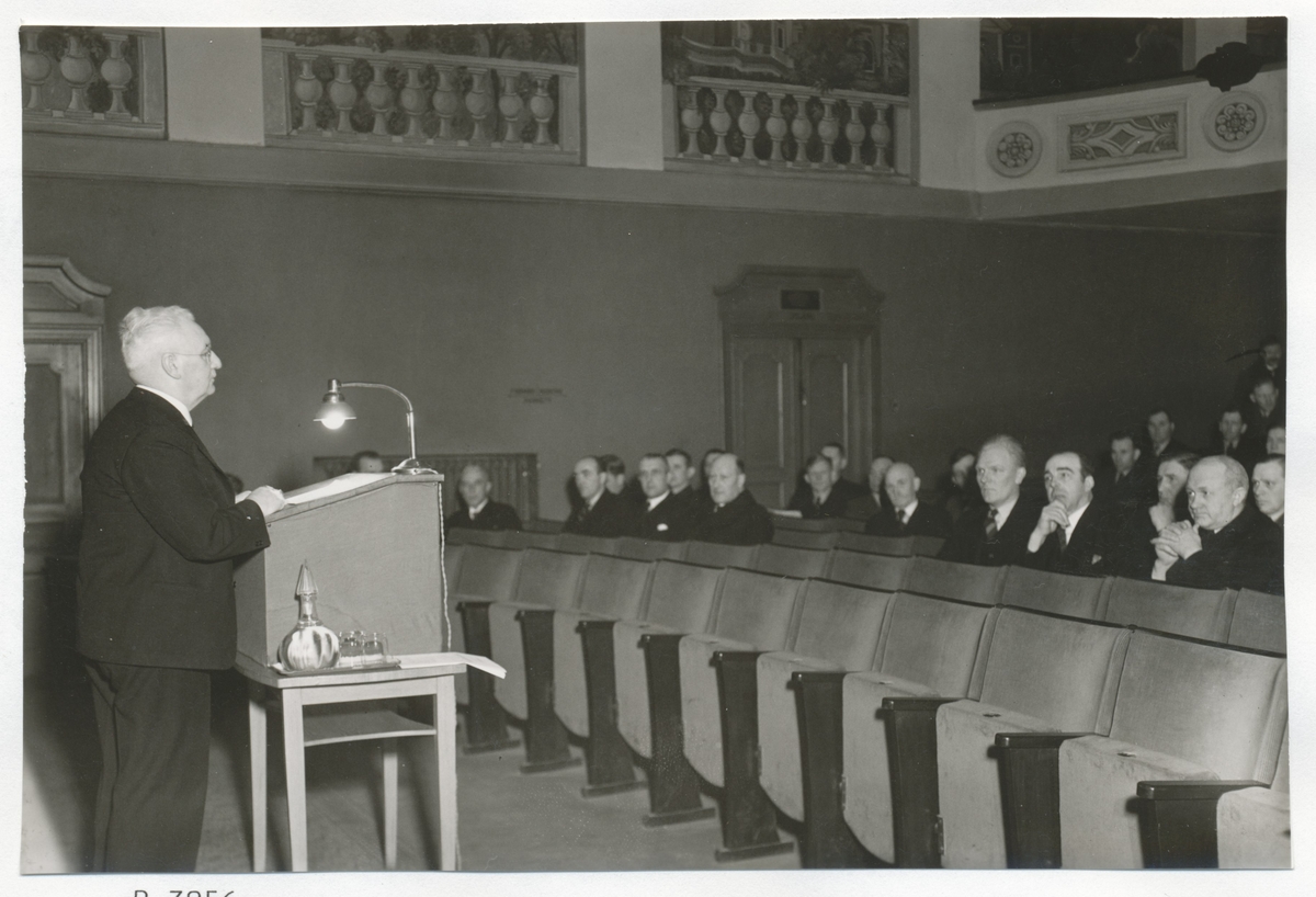 Landshövding John Falk, Kalmar, i talarstolen. 1930-talet.