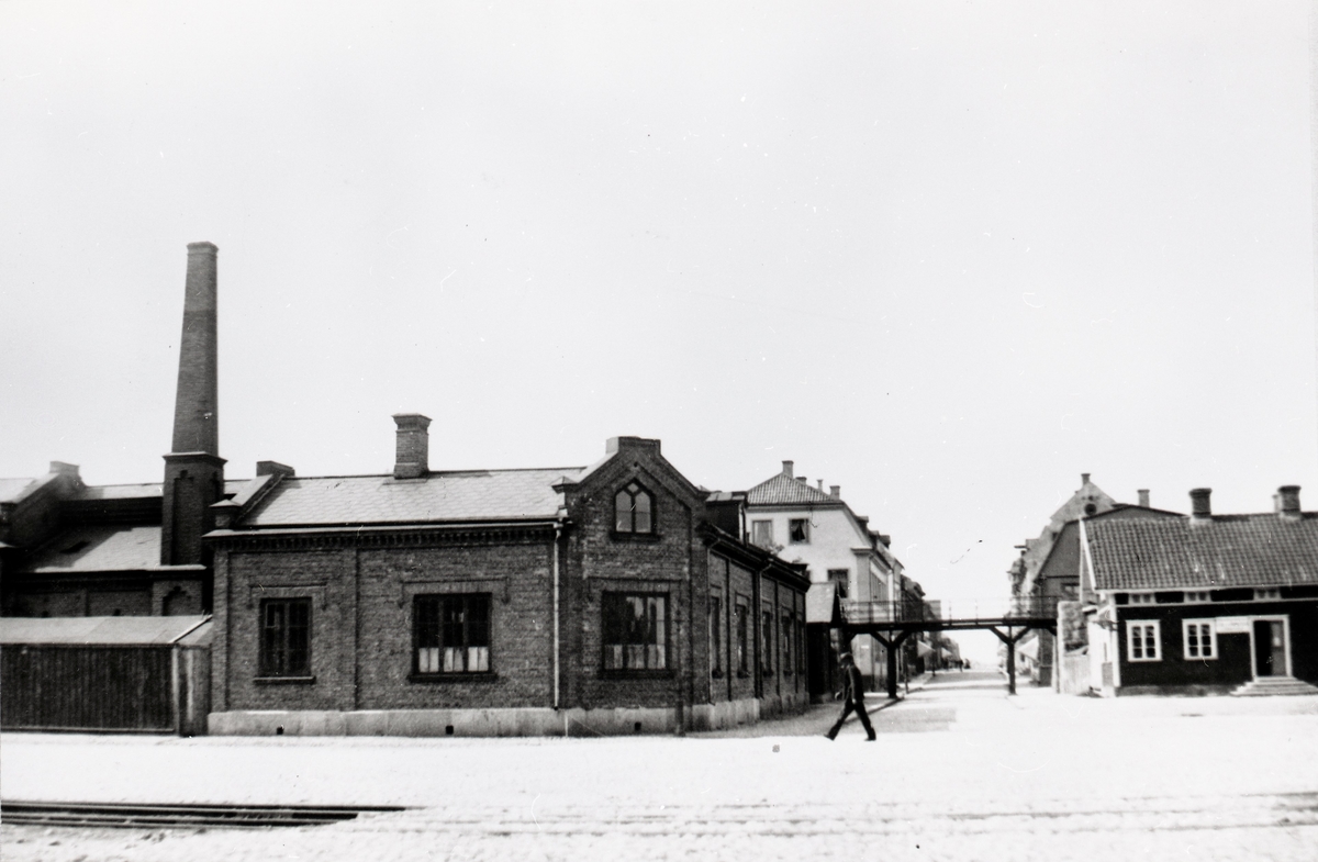 Gamla gasverket och rälsbron vid Jordbrovalvet i bakgrunden.
