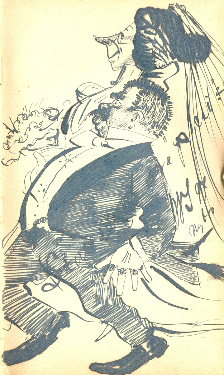 Teckning med oläsbar text, Nybro 1897 ur Lilli Sahlbergs minnesalbum.