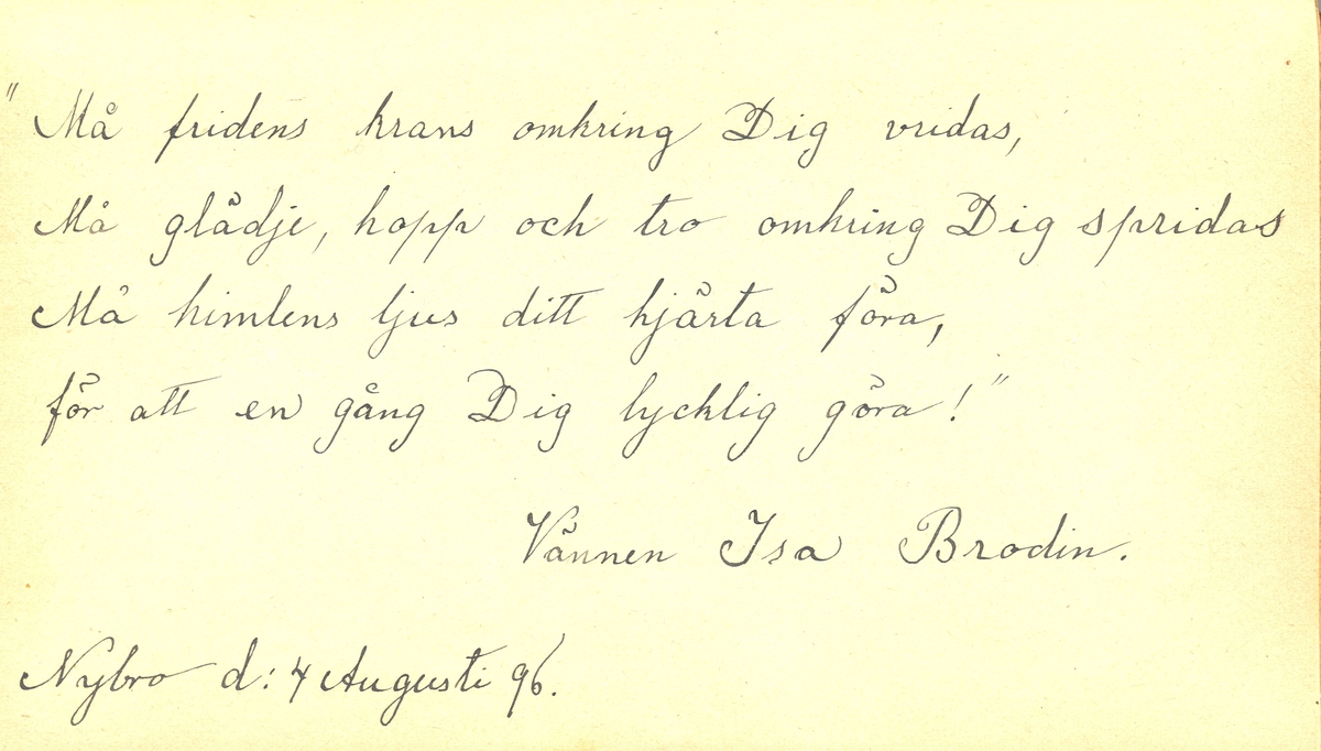 Sida med poesi ur Lilli Sahlbergs minnesalbum.