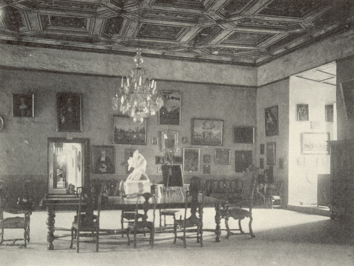 Interiör av Gyllene salen. Använd som utställningslokal för Kalmar museums samlingar.