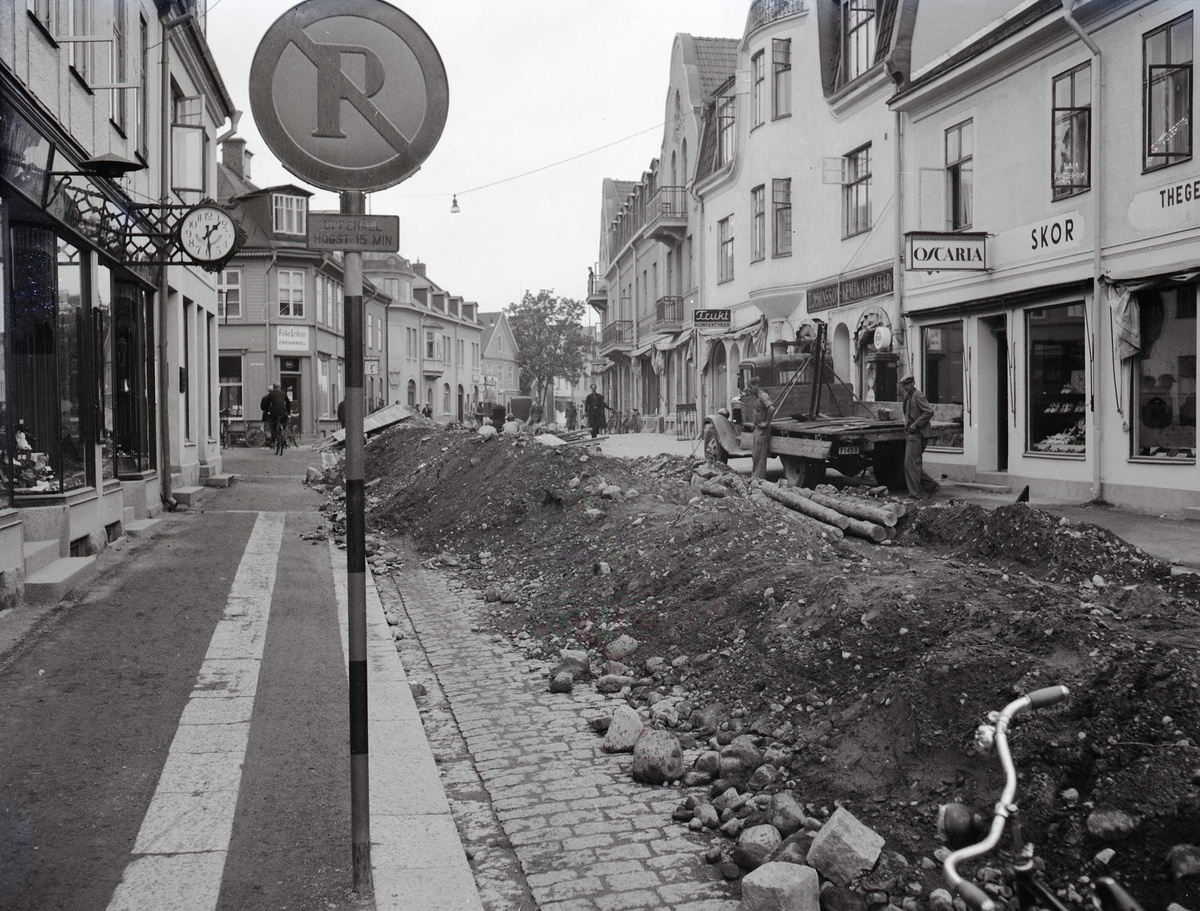 Storgatan i Nybro uppgrävd för ledningsdragning.