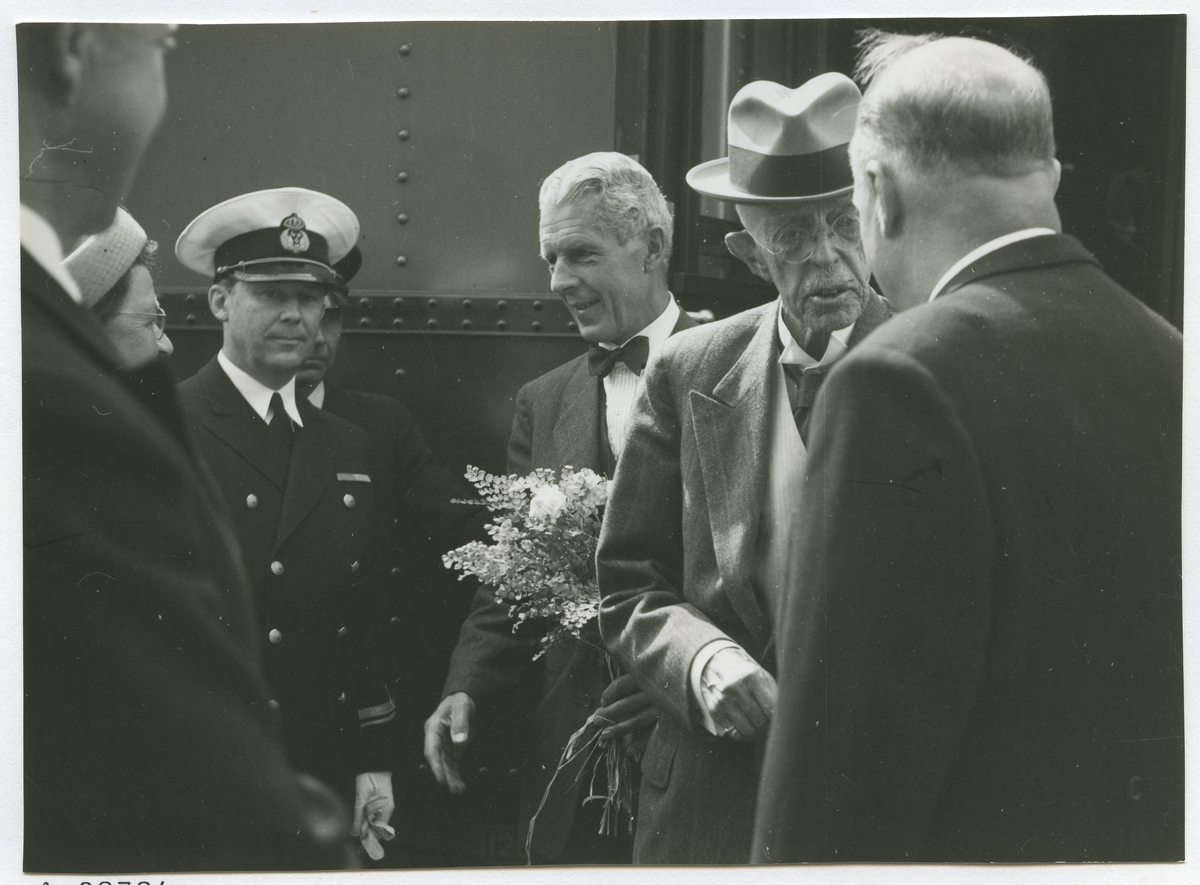 Gustav V och Ruben Wagnsson vid Kalmar Central i slutet av 1940-talet.