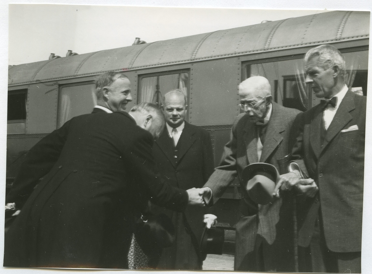 Gustav V och landshövding John Falk vid Ölandskajen i Kalmar. 1930-talet.