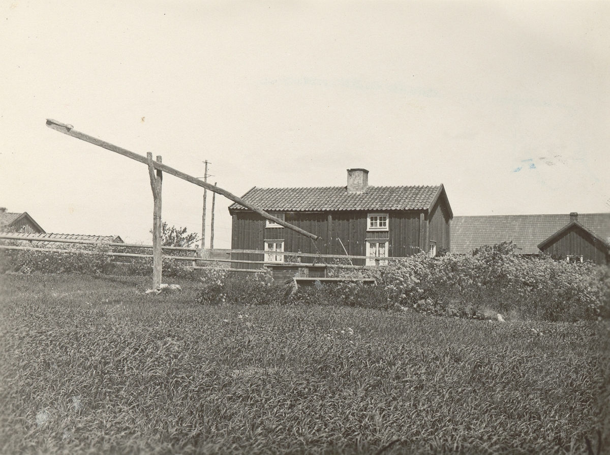 Gammal manbyggning på bondgård invid stora landsvägen.