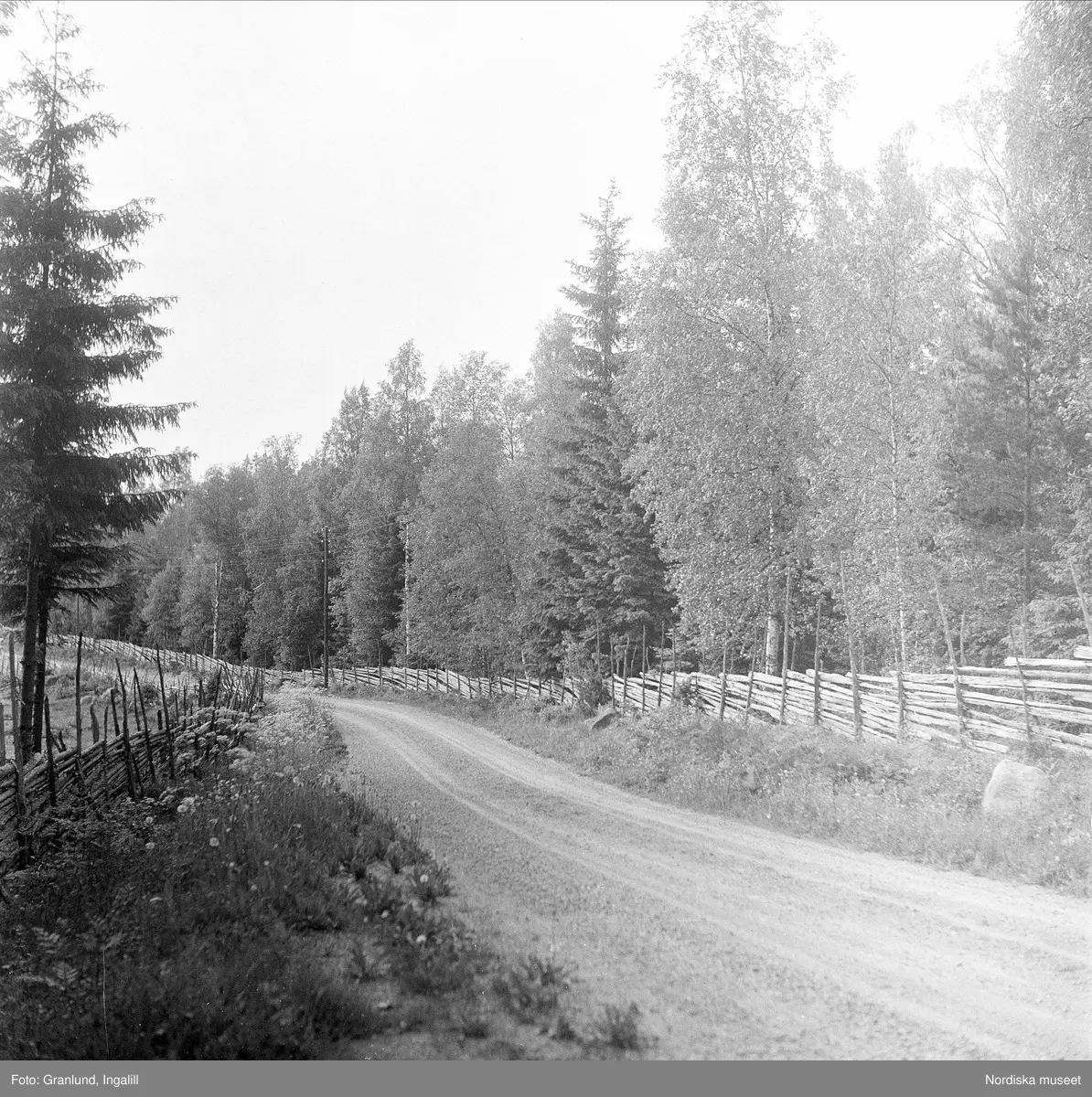 Vägen från Västra Ryd. På var sida om vägen höga träd och gärdesgård.