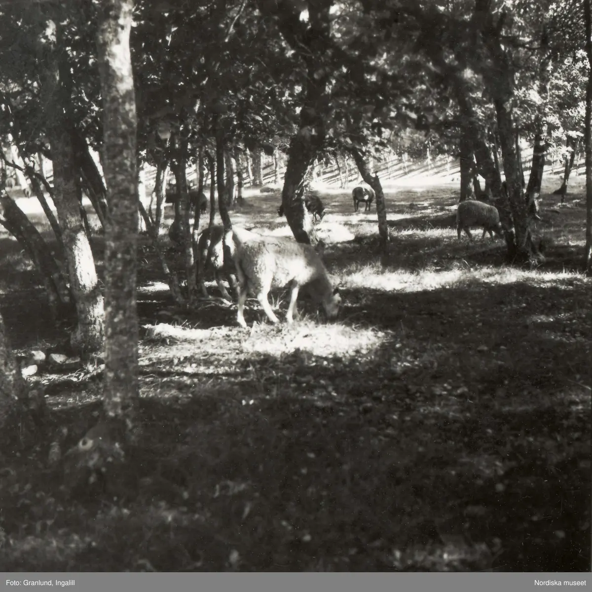 Norrlanda socken, Hammars gård, Gotland. Jordbruk. Husdjursskötsel.. Får betande i löväng vid Hammars läge.