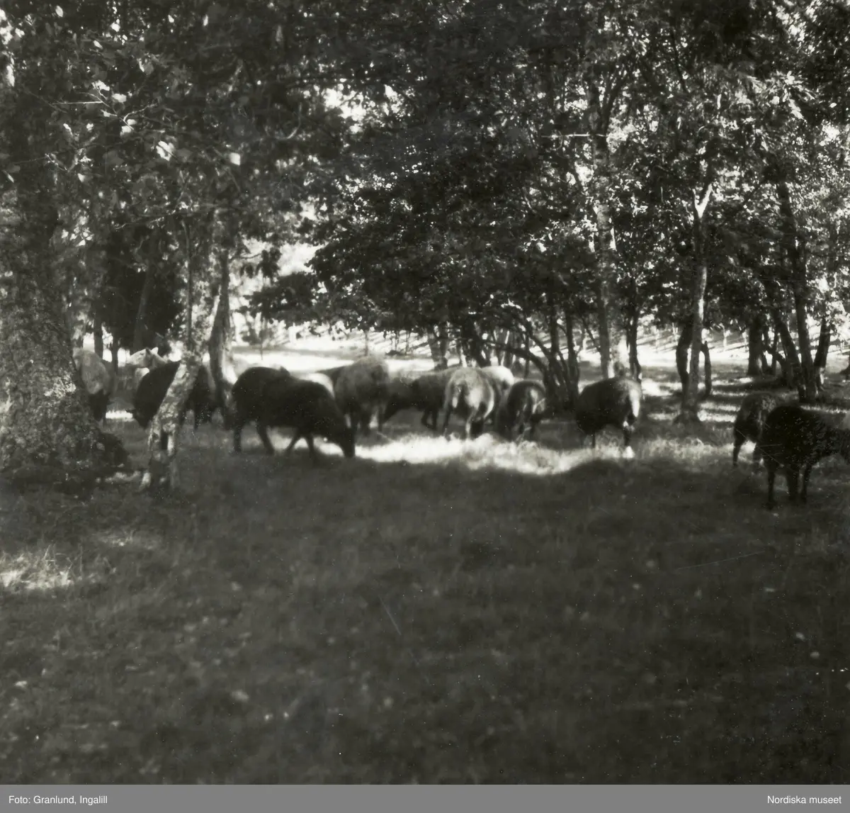 Norrlanda ssocken, Hammars gård, Gotland. Jordbruk. Husdjursskötsel. Får betande i löväng vid Hammars läge.