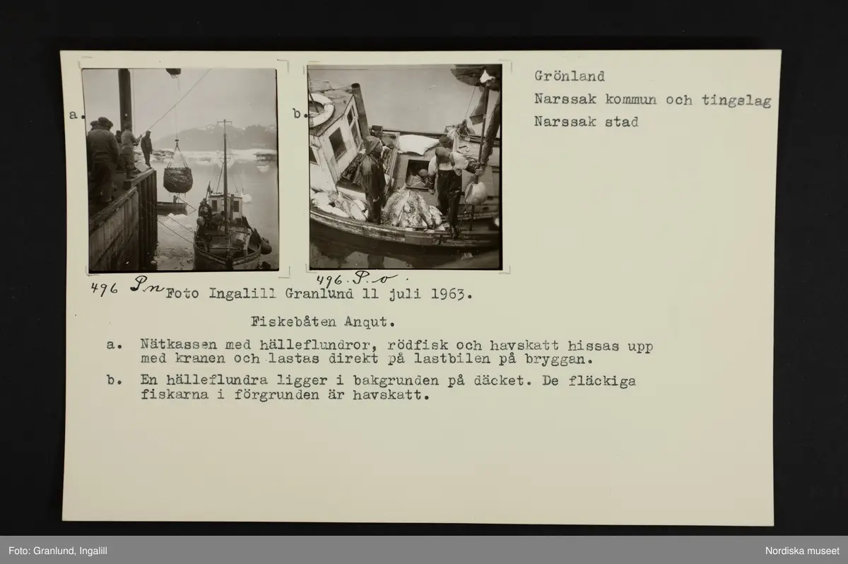 Ark med två monterade foton och text: "Fiskebåten Anqut.